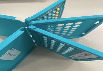 The first two trays each hold 28 active pills, while the third tray has 35 pills — 28 pink pills and for Seasonale, seven white placebo pills, while Seasonique has seven yellow pills with a different dose of medication.